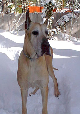 | Bred once to Ch OurDane's Fabulous Fabio, Ellie produced Ch McEmn-Anjari's Ma Belle and Ch McM-Anj Eleanor's Roosevelt (Franklyn). Ellie's dam is McEmn's Emily the Sequel (12 pts, 1 major); her sire is McEmn's Raisin' Cain. |